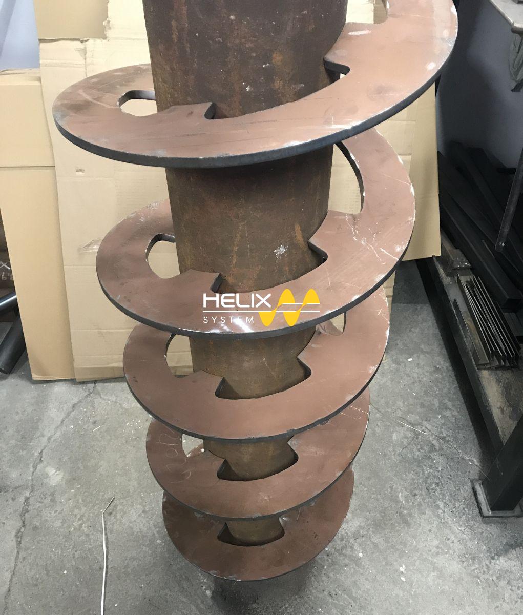 Auf besondere Bestellung des Kunden haben wir Schneckenfedern mit Ausschnitten auf der Innenseite hergestellt. Federn dieser Art sind ideal für den Transport von Material, das dazu neigt, am Kontakt der Federn mit der Schneckenwelle zu kleben.