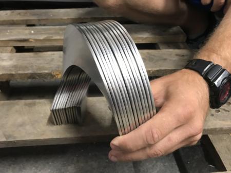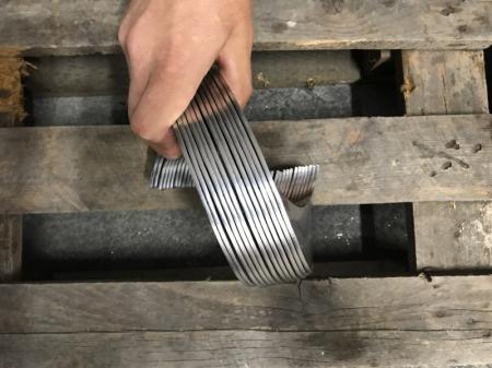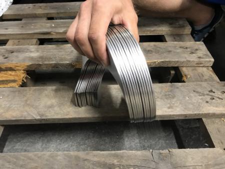 Fertigung von Edelstahlfedern für Schneckenförderer. Schneckenförderer für die Lebensmittelindustrie zum Transport von Zucker.